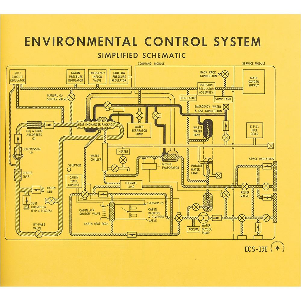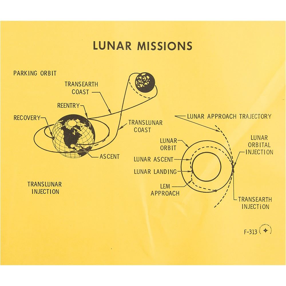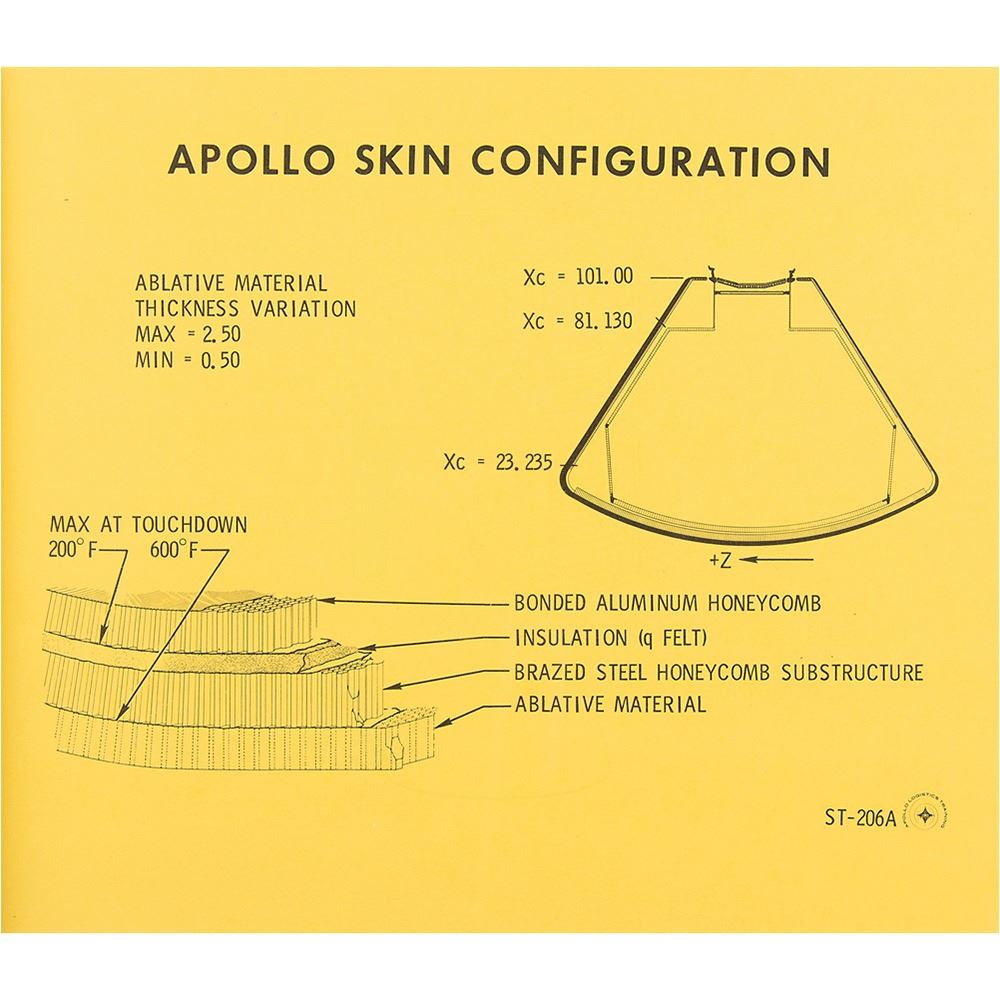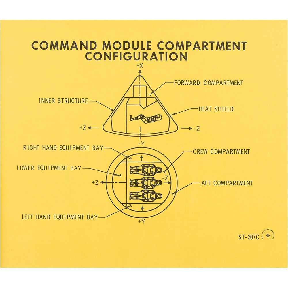 Official Apollo Logistics Training familiarization briefing manual produced by North American Aviation, circa 1964, 11.5 x 8.75, 55 pages, featuring several simplified diagrams and schematics of the original Block I CSM. Subjects depicted include the spacecraft's structure, heat shield assembly, fuel cell module, environmental control system, canard operation, reaction control system, equipment bays, and various other systems and subsystems. The last page is a detailed fold-out diagram of the spacecraft's instrument panels. In fine condition, with light general wear.