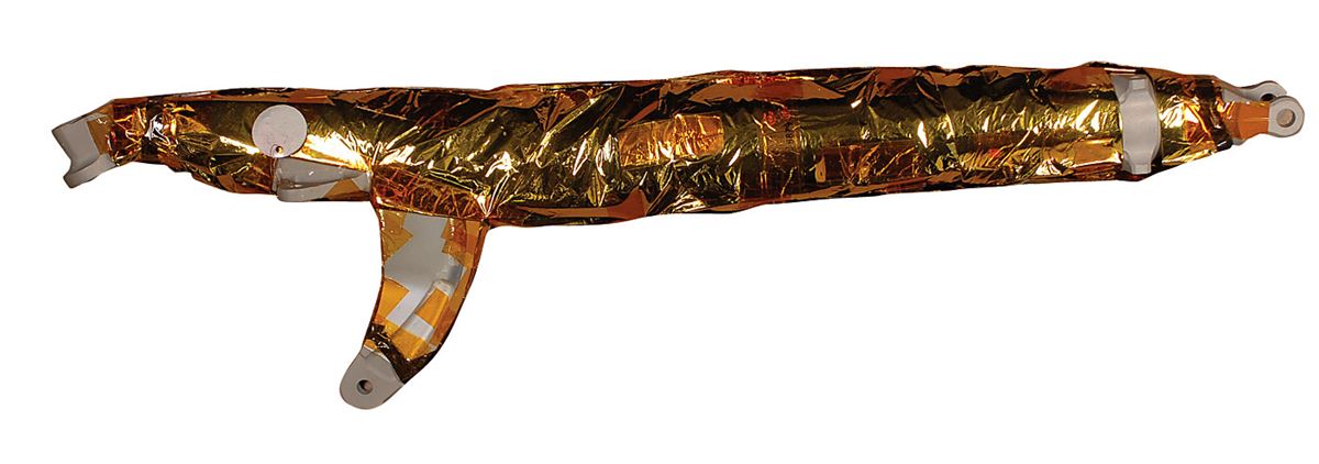 Flight-ready Lunar Module deployment truss manufactured by Grumman Aircraft. This piece comprised part of the structural-mechanical assembly between the landing-gear struts and the descent-stage structure. In conjunction with the downlock mechanism, it enabled extension and locking of the landing gear from stowed to the fully deployed position. Metal strut measures 34? long, with half the strut wrapped in Kapton foil, and a metal parts tag reading “Ser. 54, MRR 83326, LDW 320M109062.” Strut comes in its original NASA shipping box, labeled “Critical Space Item, Handle With Care,” as well as a partial parts label, stamped “Flight Item,” and remnants of an address label to the Kennedy Space Center. In fine condition. Flight-ready Lunar Module pieces rarely appear for sale at public auction and flown parts of this sort did not return from lunar missions.