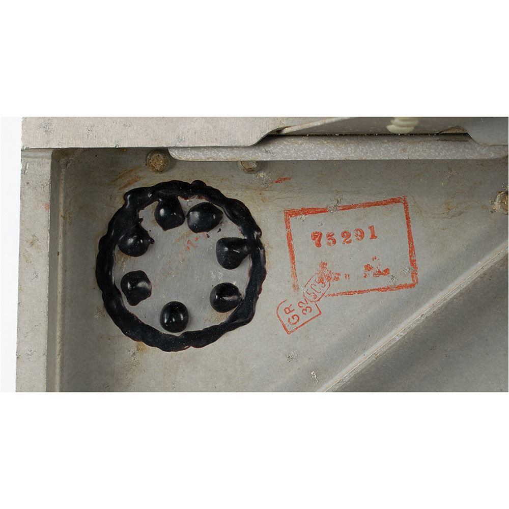 Rare Lunar Module Upper Docking Tunnel Hatch manufactured by Grumman as a developmental or test article circa 1967‰ÛÒ1968, measuring 31.5è x 43.5è x 8è, with numerous part numbers stenciled in red, beginning with the "LDW280" prefix denoting Lunar Module. The front is marked "LDW280M10515-1" and "LDW280M10515-3," with the hatch handle labeled "Unlock" and "Lock," and the valve handle labeled "Dump Valve Access." The reverse, which would face the interior of the spacecraft, has a black-and-yellow handle labeled, "Pull to Dump." A separate instruction label reads: "Latch Operation: 1. To Lock‰ÛÓPush on handle and rotate CW to stop, 2. To Unlock‰ÛÓPush on handle and rotate CCW to stop." At the top of the hatch is a folding handle marked, "Pull to Release." In fine condition.