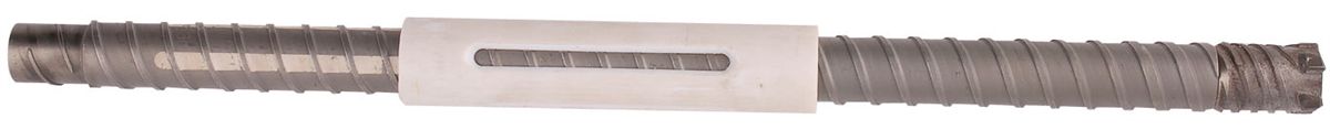 Apollo lunar sample core tool. Threaded hollow tool measures 18? long, with serial number etched at one end, and a slotted plastic sleeve which articulates from end to end.