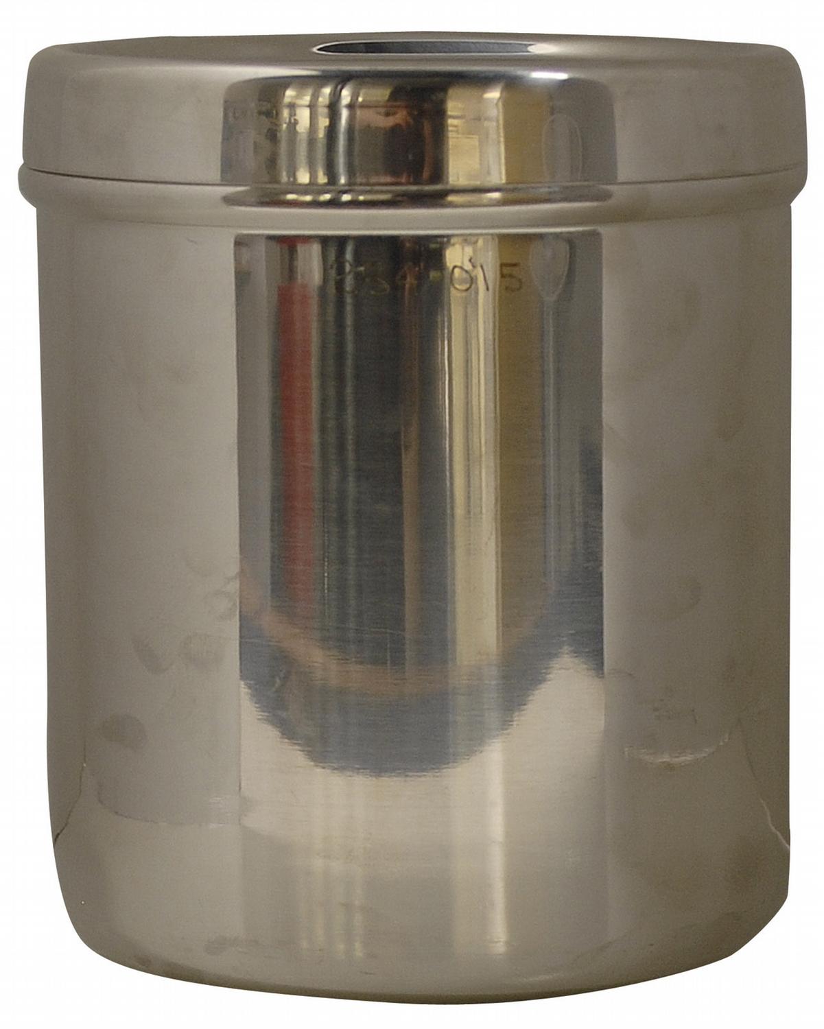 Lunar receiving laboratory stainless steel circular containment vessel, 6 x 7.5, used inside the lunar receiving laboratory to hold moon rocks upon their return to Earth. Two-piece vessel has a lid with handle and both are etched with serial number 254-015. Engraved on the bottom of the cannister is “Polarware Co. Made in USA, Stainless Steel, 3J 7-70.” Stored inside the can is the original lunar packing material for the can.