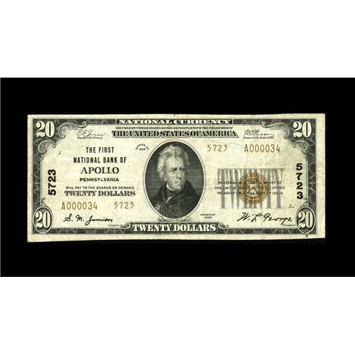 Apollo, PA - $20 1929 Ty. 2 The First NB Ch. # 5723The