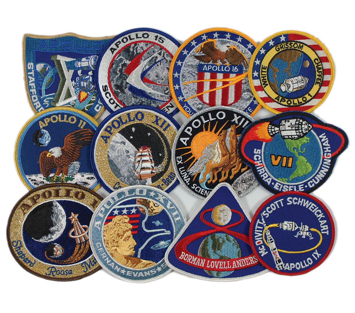 A complete set of Lion Brothers Apollo patches. Included are Apollo I, and Apollo 7–17. In fine condition. A well preserved collection, seldom offered in whole.