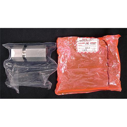 <Our item number 136839><B>Apollo Program. 1972, Moon Rock Containment Vessel.</B> (3x1") This stainless steel, two part containment vessel was designed to be able to transport a moon rock (or piece thereof) here on earth without the moon rock being contaminated or damaged. The containment vessel is sealed in a two unit clear plastic pouch (a matching container has been removed) and includes the original pink "Cleaned for Service", NASA pouch with matching label marked "LRL Tools", June 23, 1972 and with inspection handstamp. An important piece of memorabilia. <BR>Estimated Value $350 - 500. <BR><BR>Our item number 136839<BR><IMAGES><P ALIGN="CENTER"><IMG SRC="http://www.goldbergcoins.net/liveauction/49jpegs/136839.jpg"> </P></IMAGES>