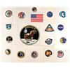 Sought-after set of 18 swatches of Owens Corning Beta cloth, ranging in size from 5.75 x 5.5 to 15 x 14.25, featuring mission emblems for many of NASA’s most storied manned missions. The group lot includes Apollo missions 7–17, Skylab missions 1, 2, and 3, and the Apollo–Soyuz Test Project. Also included is an American flag swatch, a swatch bearing the iconic NASA ‘meatball’ logo, and a second, considerably larger swatch bearing the Apollo 11 mission insignia. In overall fine condition.