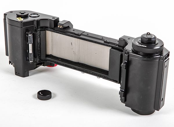 Apollo Program, C1970s, Nasa Nikon F4, 35mm. Film Back (P/N SED 33101575-301 (S/N 1019) 10.5x3.5x3.5") This Nikon film back appears to be one of the many variations of the F4 variety film back designed to hold 250 frames of 35mm. Kodak film. It is one of the earlier versions without the data back. We're not sure of the details on this piece, but it appears to be in very good condition and may even contain film. This type of Nikon camera was used over the years by NASA personnel to shoot many of the NASA 8x10" pictures you see (Note: the film advance dial has come off. The dial is included and the film back still appears to function.).