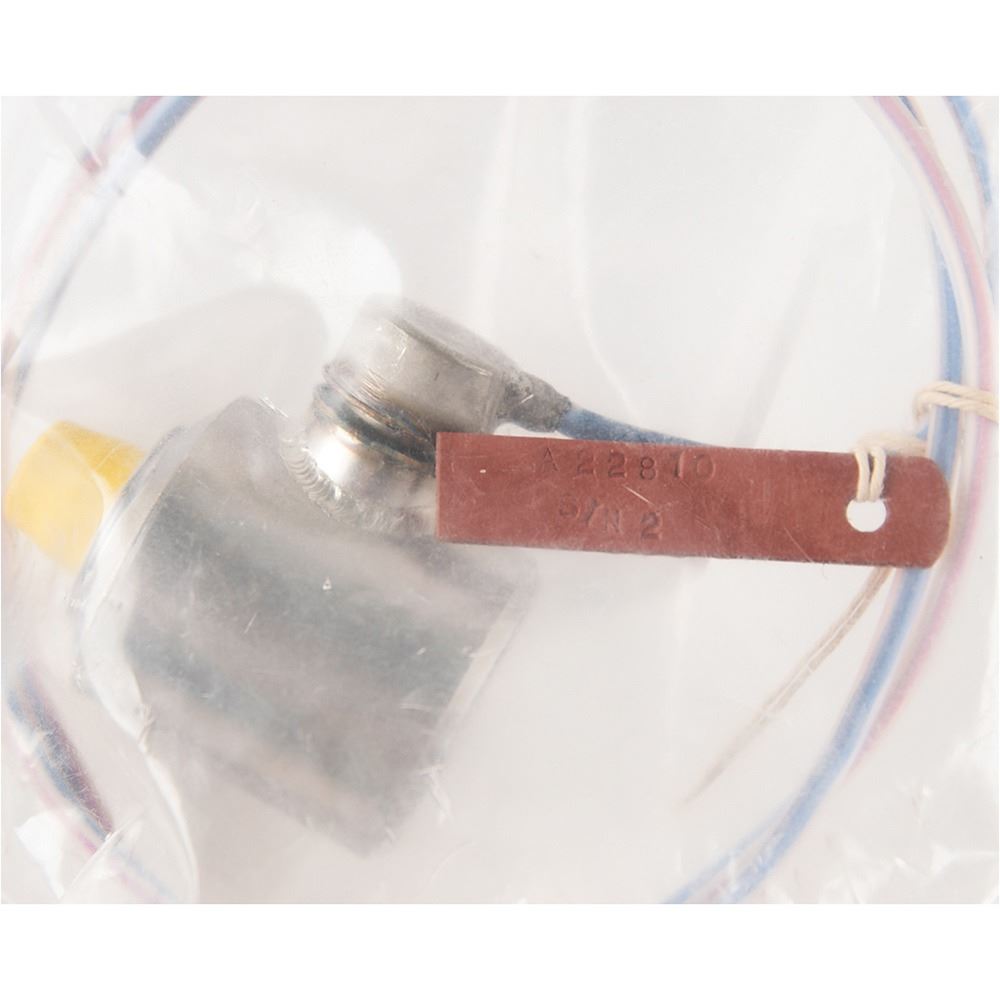 Apollo SE-8 Reaction Control Thruster Solenoid, measuring 2.5è x 2.5è x 1.5è plus attached wiring harness, with a quality inspection label attached, reading: "406896A, A184-1 Pass" and "A22810, S/N 2." Sealed in its original plastic and in fine condition.