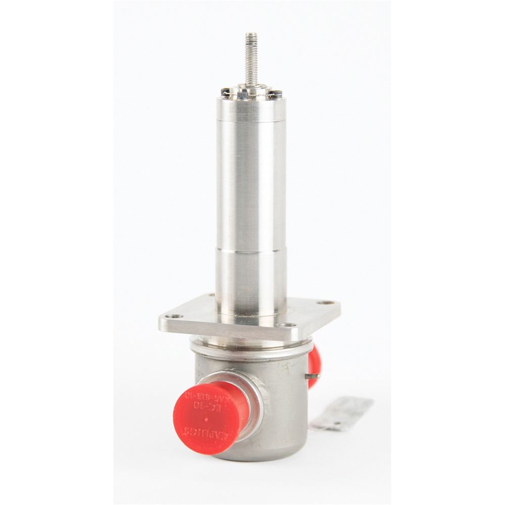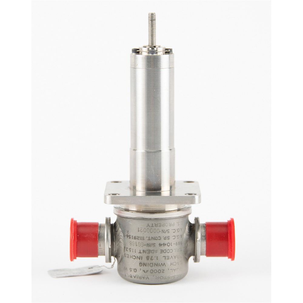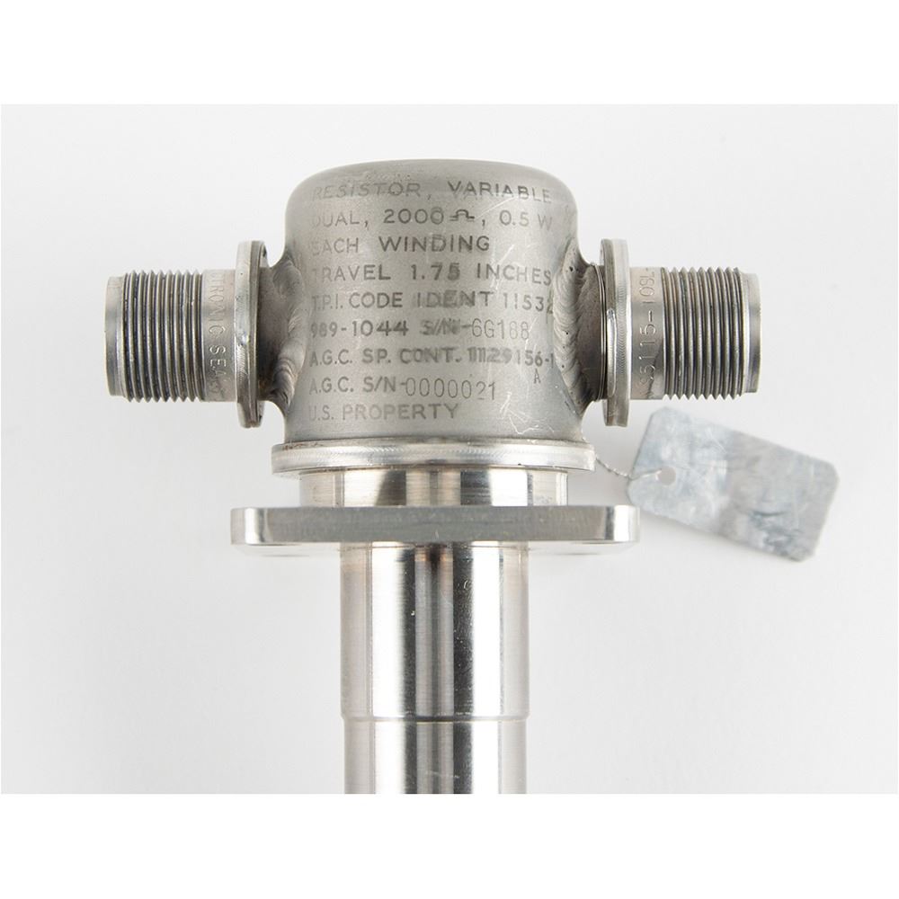 Potentiometer/resistor made by Aerojet General Corp. for use with linear transducer as part of the pneumatic control system of the propellent control valve of the AJ10-137 rocket engine, as used in the Apollo Service Module's service propulsion system. The component measures approximately 3Ë x 5Ë x 1.75Ë and is marked on the side: "Resistor, Variable, Dual, 2000 Ω, 0.5 W, Travel 1.75 Inches." Accompanied by copies of diagrams demonstrating the location of the potentiometer/resistor in the Apollo SPS engine.