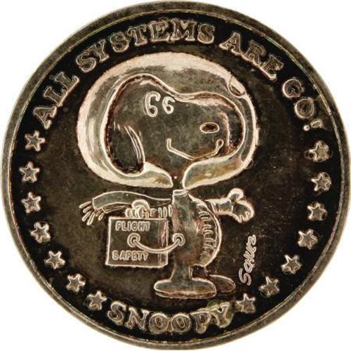 <B>Apollo "Snoopy" 1969 Moon Landing Commemorative Medallion,</B></I> 1.5" diameter, presented to Joe Garino by NASA's Public Affairs Office. Captioned "<I>All Systems are Go!</B></I>" and "<I>Flight Safety.</B></I>" <I>From the collection of renowned former physical trainer of the astronauts Joe Garino. This lot is accompanied by a signed certificate of authentication from Garino verifying its provenance.</B></I><BR><BR><b>Shipping:</b> Miscellaneous Collectibles, Smal (<a target="_blank" href="http://www.heritageauctions.com/common/shipping.php">view shipping information</a>)