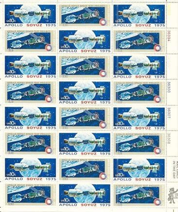 USPS 1975 Apollo-Soyuz Mission Full Sheet of 24 x 10 Cent Stamps Scott 1569-70