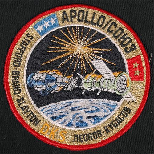 <Our item number 130202><B>Apollo Soyuz, Deke Slayton's "Personal" Crew Patch.</B> This 5" crew patch is virtually identical to the normal crew patch except for the addition of orange "DKS" initials at the bottom. Beautifully sewn and rarely available. A great addition to any collection. <BR>Estimated Value $500 - 750. <I><BR>Ex. the Donald "Deke" Slayton Estate collection.</I> <BR><BR>Our item number 130202<BR><IMAGES><P ALIGN="CENTER"><IMG SRC="http://www.goldbergcoins.net/liveauction/49jpegs/130202.jpg"> </P></IMAGES>