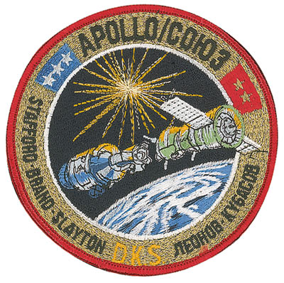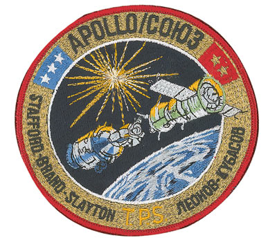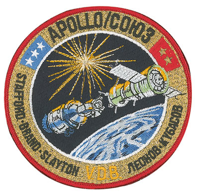 Three limited edition Apollo-Soyuz crew patches, originating from Deke Slayton’s personal collection. The patches measure almost five inches in diameter, with the initials of “D.K.S.,” “V.D.B.,” and “T.P.S.,” embroidered along the bottom edge of each patch respectively. Accompanied by a 2006 certificate of authenticity for one patch, although all three originate from Slayton’s collection, signed by his wife Bobbie, stating the patch “was limited in edition and has been stored in his safe deposit box since 1975.”
