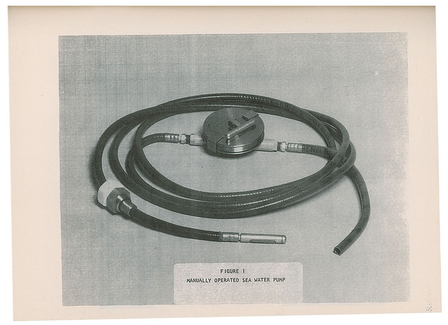 A staple-bound manual entitled “Systems Test Report for Evaluation of the Apollo Command Module Sea Water Pump,” dated April 10, 1969, prepared by the Landing and Recovery Division, Recovery Systems Branch at the Manned Spacecraft Center, which mainly consists of 10 figures and five appendices—General Test Requirements, Test Information Release (SC 007A), Test Information Release (B/P 1102A), Sea Water Pump Control Drawing, and Sea Water Pump Design Specification.