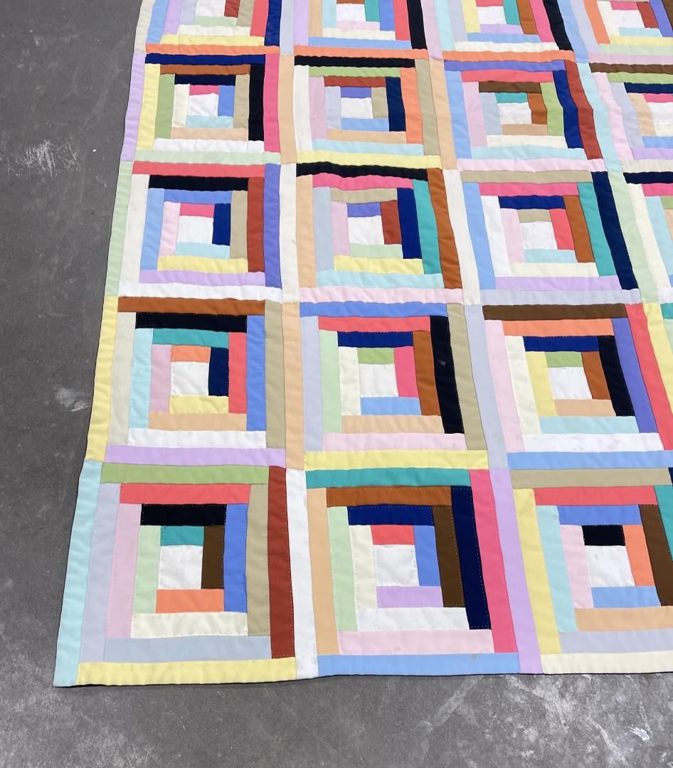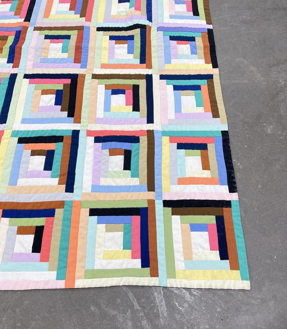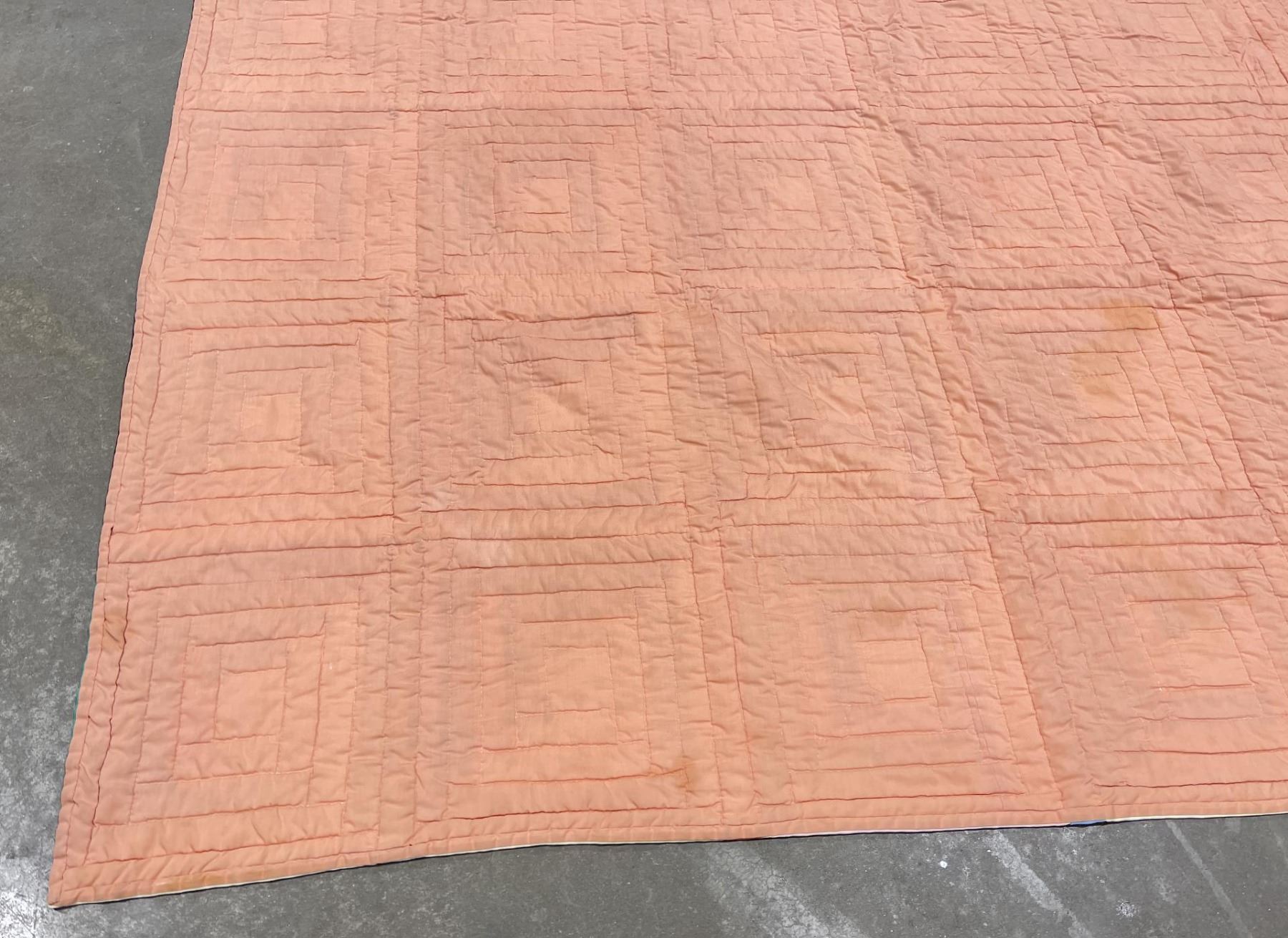 Very nice old quilt. Log Cabin Block pattern. 75.5" by 91".