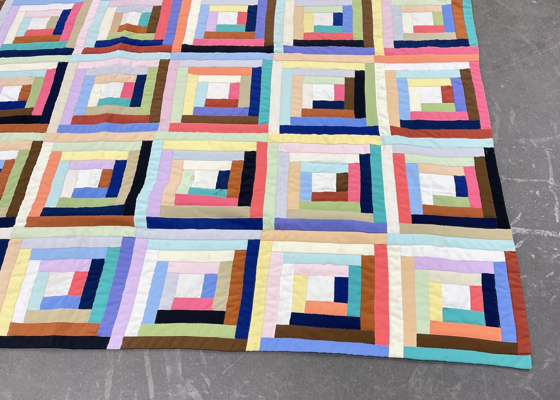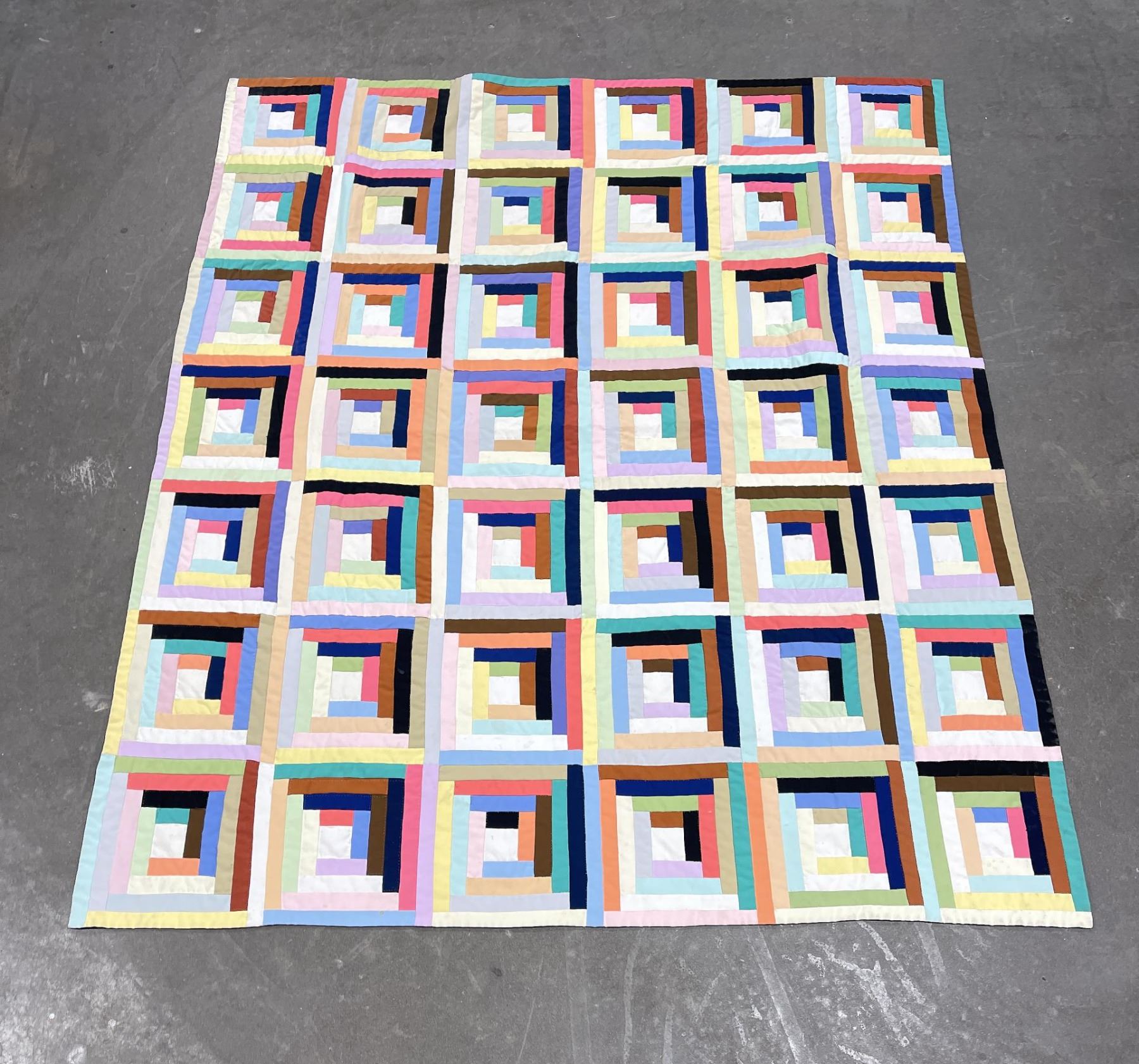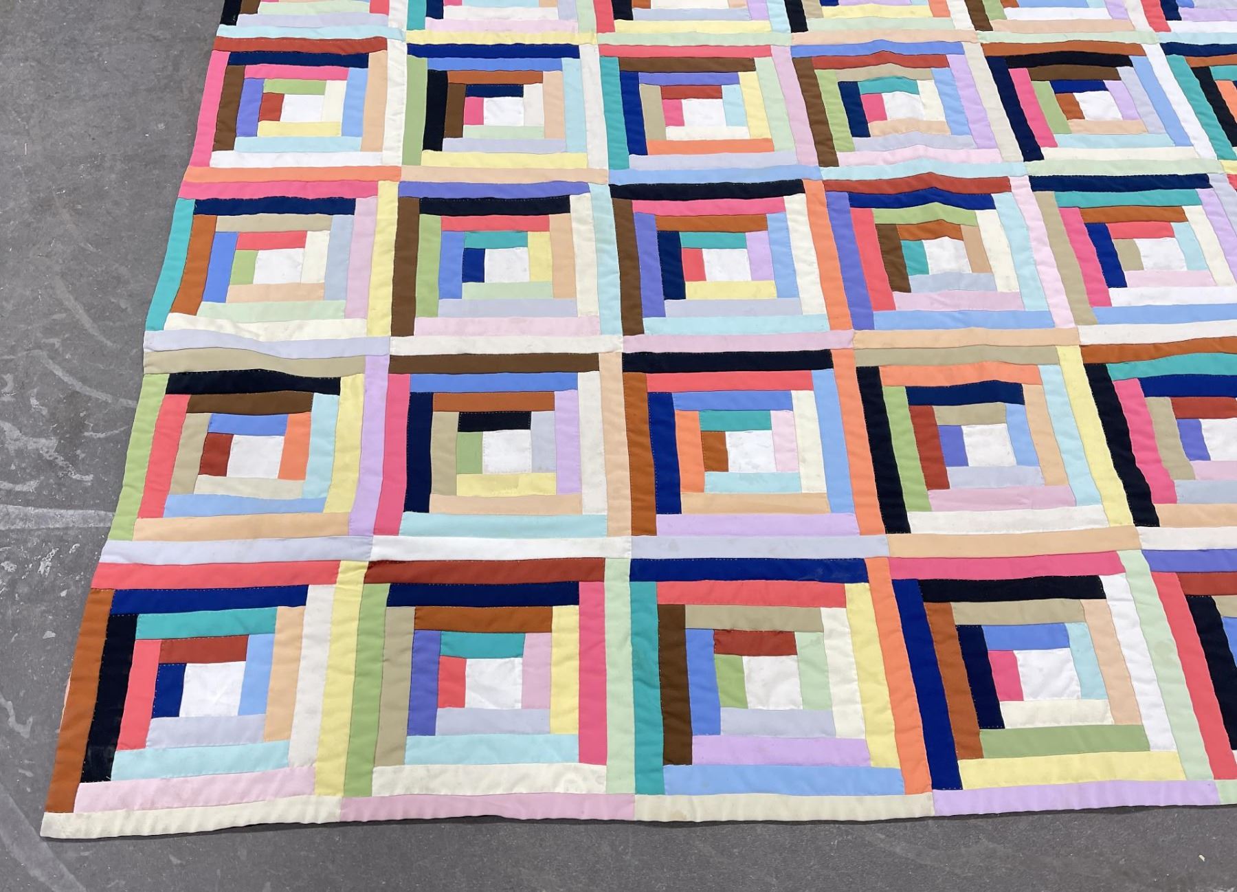 Very nice old quilt. Log Cabin Block pattern. 75.5" by 91".