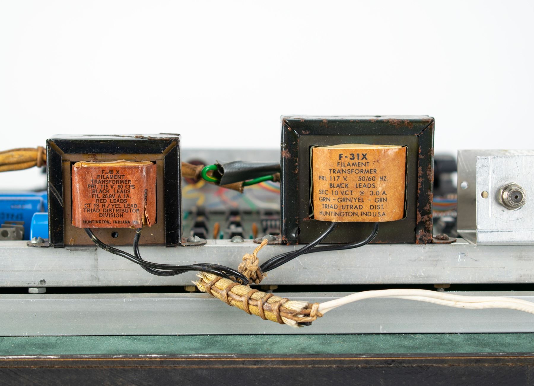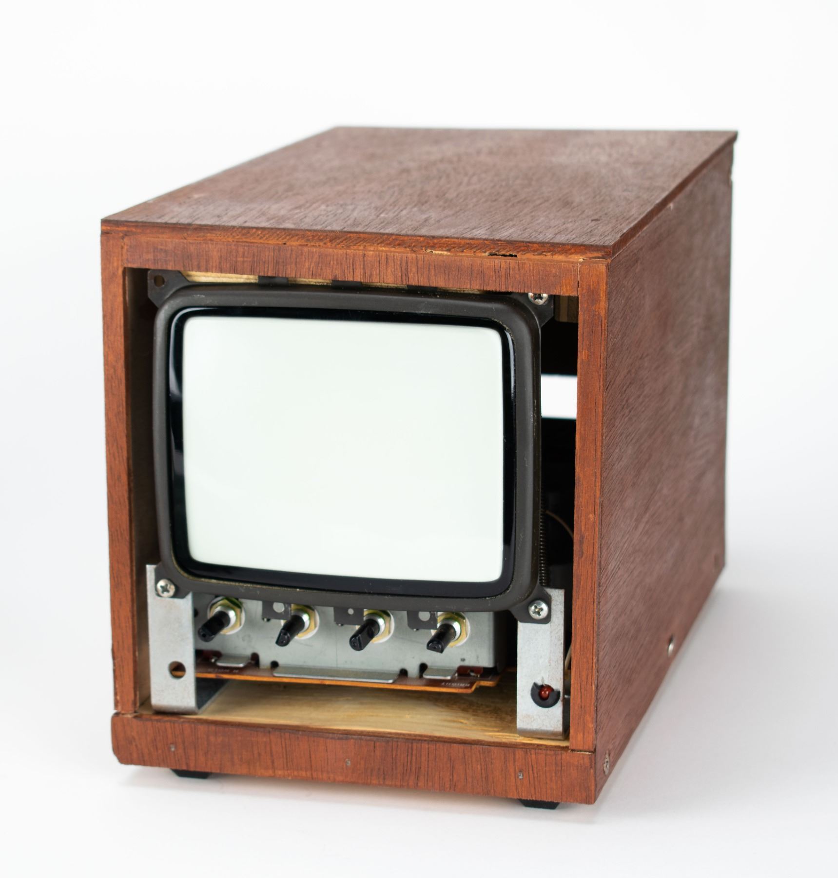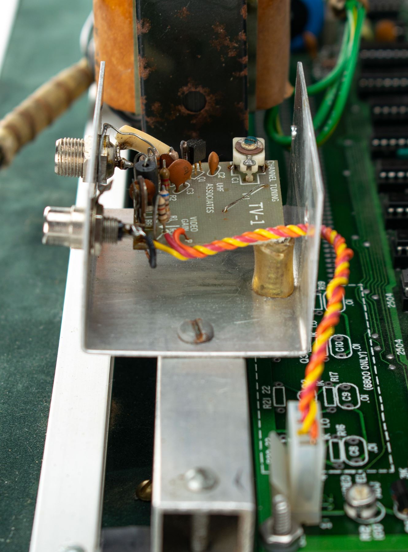 Another central characteristic of the Apple-1 is its built-in video terminal, which allows output to a television screen or video monitor. This was a dramatic advance from the traditional computer input/output mechanism of the day, the ASR-33 teletype, which printed a computer’s output onto a spool of paper. With this video port, the Apple-1 allowed a user to view commands on a screen in real time—something taken for granted in today’s computing world. Included with this Apple-1 is a period open frame ‘security’ monitor in a homemade wooden case, and a period hobbyist-assembled terminal keyboard 'kit' wired for this Apple-1. Interestingly, the keyboard has no 'return/enter' key; instead, this functionality is accessed by pressing the and keys concurrently.