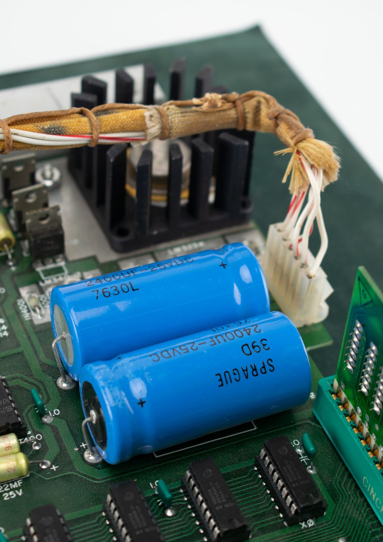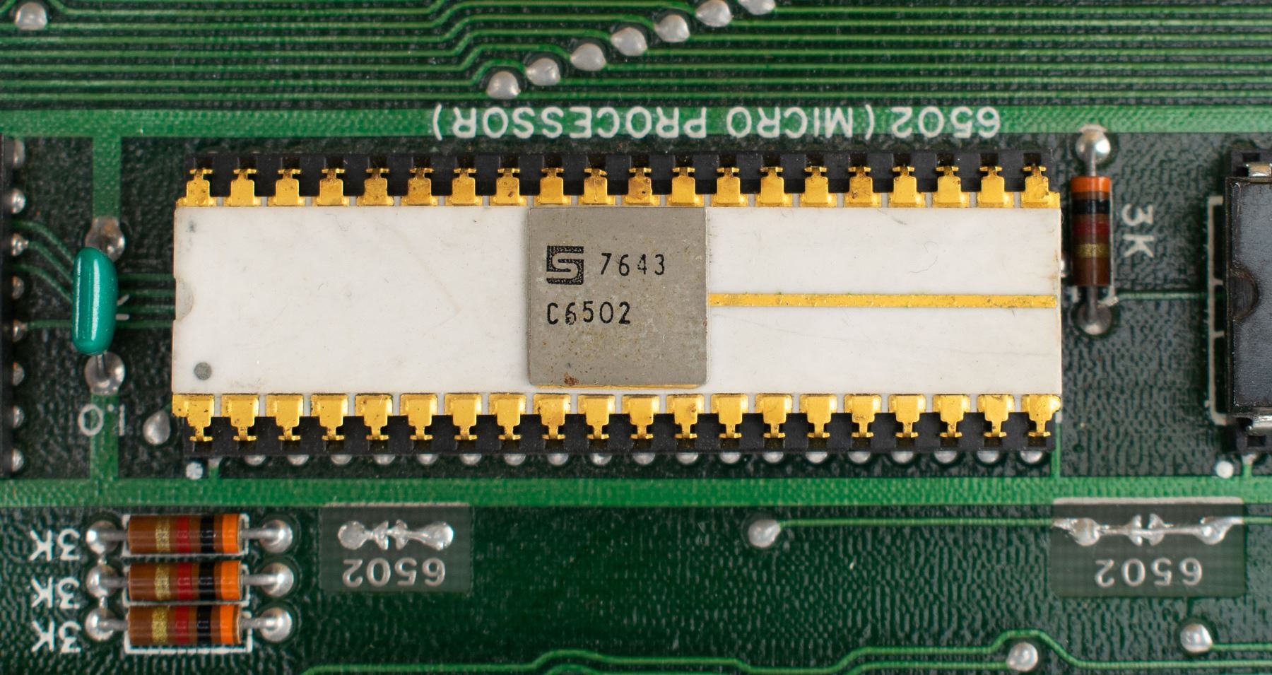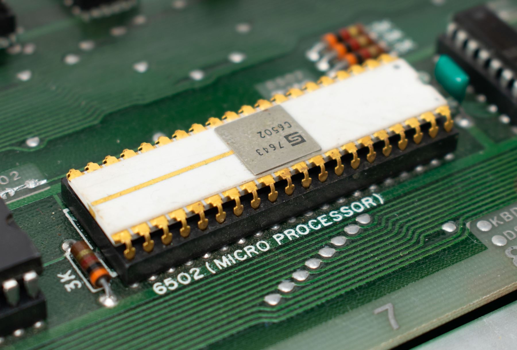 A masterpiece of innovation, the standard Apple-1 included 4K of inexpensive dynamic random access memory (DRAM), which could be expanded to 8K on board or 64K externally; this Apple-1 has been wired to use 8K of onboard Mostek DRAM. Most computers in the Apple-1’s price range used more expensive static memory (SRAM), which limited them to 1K of memory for a similar cost. We still use DRAM technology today in computers, mobile phones, and electronics.
