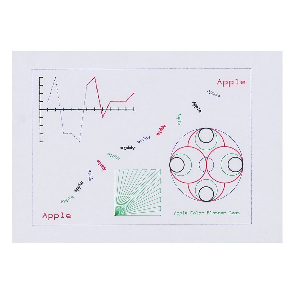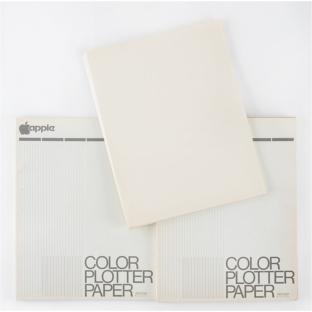 Scarce, fully functional Apple Color Plotter 410, Model No. A9M0302P, Serial No. E01155, including extra ink cartridge pens, two pads of paper, and an "Apple Color Plotter Test" page. Sold by Apple Computer from 1983 to 1988, this plotter could be connected to an Apple II (with an installed Super Serial Card) or Apple III computer. A desirable example of a rather obscure piece of Apple hardware.