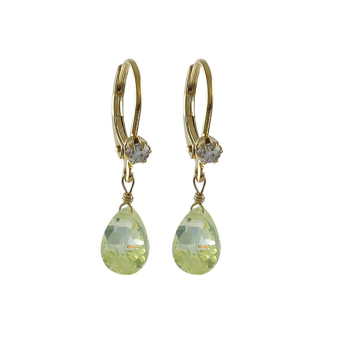 Apple Green 6X9 Teardrop CZ On Gold Tone Brass Lever Back With Crystal Earrings- 1.08"