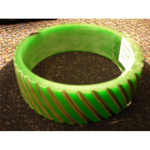 1950?s bakelite bangle in rich apple green with slanted cut groves all around the bangle.