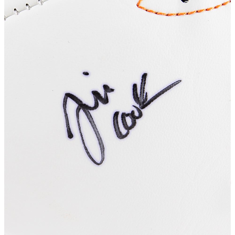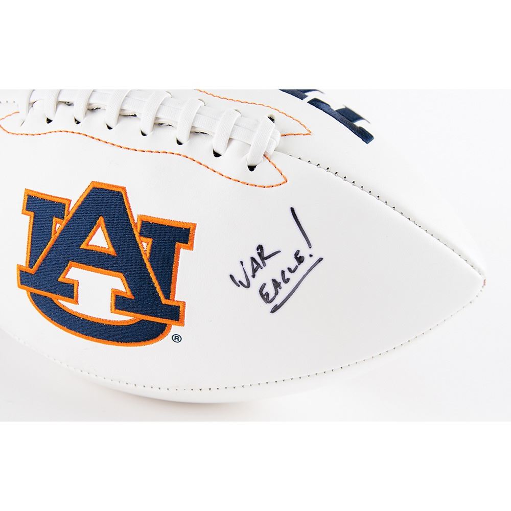Uncommon white-paneled 'autograph' football embroidered with the logo of Cook's alma mater, Auburn University, signed in felt tip on the side panel in black felt tip by the Apple CEO, "Tim Cook, War Eagle!" In very fine condition. Accompanied by a full letter of authenticity from JSA. The consignor notes that Cook signed the football following his appearance on the Paul Finebaum show, in Auburn, before the 2021 Iron Bowl. Cook was honored with Auburn’s 'Captains of Industry Award' on the field before the historic bowl game. Accompanied by three photos of Cook on the set of Finebaum's show. A scarce signature of Apple’s CEO, who increased Apple’s market value from $348 billion to $1.9 trillion since taking the reins from Steve Jobs in 2011. This is the first Tim Cook autograph that we have ever offered.