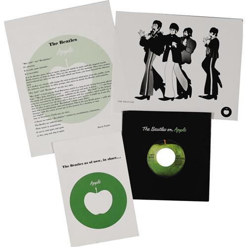 <B>Beatles Related - Apple Promo Pack.</B></I> Neat package promoting Apple artists of the day, including these 45s: the Beatles' "Hey Jude"/ "Revolution" (Apple 2276, 1968); Jackie Lomax's "Sour Milk Sea"/ "The Eagle Laughs At You" (Apple 1802, 1968); Mary Hopkin's "Those Were The Days"/ "Turn, Turn, Turn" (Apple 1801, 1958); and John Foster & Sons LTD. Black Dyke Mills Band's "Thingumybob"/ "Yellow Submarine" (Apple 1800, 1968). Each record is matched with an 8" x 10" booklet about the artist and with an informational letter from Apple executive Derek Taylor. The pack comes with the original mailing envelope, an extremely rare item that just doesn't turn up. You want more unique? The 45s come with the original Apple dropped thumb tab sleeves, which were only issued with this set. Condition: 45s, photos, booklets, and letters are in MT 9 and envelope in VG 5.<BR><BR><b>Shipping:</b> Flat Material, Small (<a target="_blank" href="http://www.heritageauctions.com/common/shipping.php">view shipping information</a>)