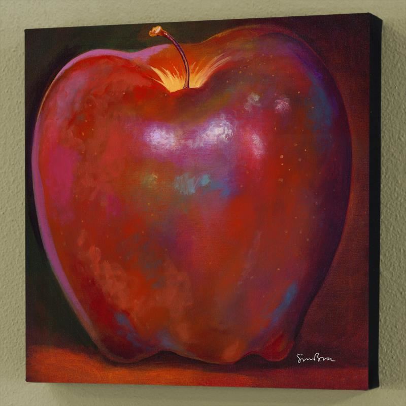 "Apple Wood Reflections" is a numbered limited edition giclee on canvas by Simon Bull bearing the artist's authorized signature. This piece comes gallery wrapped and includes a Letter of Authenticity. Measures approx. 12" x 12" x 1.5" (image). This item requires special handling and may have a longer than usual turnaround.
