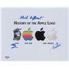 Color satin-finish 10 x 8 photo showing the "History of the Apple Logo," signed in blue felt tip, "Think Different! Woz" and "Ronald Wayne." In very fine condition, with a PSA/DNA label affixed to lower left corner (certificate not present).