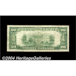 Appleton City, MO - $20 1929 Ty. 1 The First NB Ch. # 2636An excessively rare bank in small size, as the issue here was utterly minimal until the bank closed in early 1932. Just 197 sheets of tens and 35 sheets of twenties were issued, with the small size census standing at only two specimens. Fine-Very Fine, one of the real rarities in this collection. <BR><BR><B>Important notice:</B> Heritage usually auctions material at the rate of 200-250 lots per hour. On some occasions eBay Live bid software or the Internet may not be able to keep up with the pace of the auction. We recommend placing a realistic absentee bid now as insurance to avoid disappointment. Occasionally the auctioneer may eliminate or reject an eBay Live bid, and the auctioneer may also reopen a lot after the close of the eBay live bidding (usually because we missed an audience bid), and may reject your bid even if it shows you as the winning bidder. By bidding via eBay Live, you agree that Heritage may award the lot to another bidder at its sole discretion under the circumstances described above or any other reasonable circumstances. Since eBay bids are not shown to us until we open the lot on the floor, we treat those bids just like floor bids. In most cases the floor responds before the eBay bid is presented to us, due to Internet lag time, so for consistency we have made it a policy that floor bids are always considered first over tie eBay live bids. Also please note that all Heritage lots purchased through eBay Live carry a 20% Buyer's Premium. Please make sure you read the Terms and Conditions before you bid. <BR><BR><B>IMPORTANT ANNOUNCEMENT ABOUT RESERVES:</B> Heritage now divulges all reserves on its web site 7 days before every auction. If you want to know whether the reserve on this lot has been met, and if not, what the reserve amount is, please visit this lot page on the HeritageCoin.com web site, or email: bid@HeritageGalleries.com
