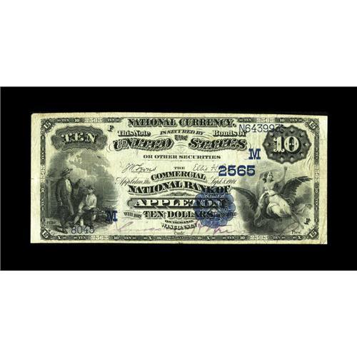 <B>Appleton, WI</B></I> - $10 1882 Date Back Fr. 545 <B>The Commercial NB</B></I> Ch. # (M)2565<BR>A nice <B>Fine-Very Fine</B></I> from the home of Lawrence College. Tonight's example is well margined and retains the oft faded purple stamped signatures.<BR><BR><b>Shipping:</b> Coin/Currency (<a target="_blank" href="http://www.heritageauctions.com/common/shipping.php">view shipping information</a>)