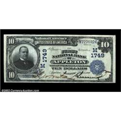 Appleton, WI - $10 1902 Date Back Fr. 619 The First NB Ch. # (M)1749A nice grade Date Back bearing bold two color pen signatures. Very Fine-Extremely Fine. Important notice: We expect to be auctioning lots at the rate of 200-250 per hour. Sometimes eBay Premier live bid software cannot keep up with that pace, so we strongly recommend that you place a realistic proxy bid now as insurance to avoid disappointment. Also please note that all Heritage/CAA lots purchased through eBay Premier carry a 20% Buyer's Premium. Please make sure you read the Terms and Conditions.