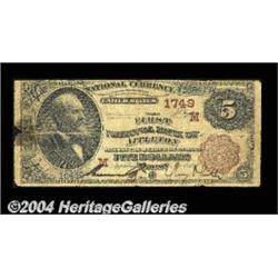 Appleton, WI - $5 1882 Brown Back Fr. 471 The First NB Ch. # 1749A new note in the Hickman-Kelly census, bringing the total of documented $5 Brown Backs on this Fox Valley institution to four. The example offered tonight is Very Good with margin separations along the sharp folds and tape residue. Visitors to the website www.anncoulter.com can view a photo of the conservative spokesperson visiting the gravesite of Senator Joseph McCarthy at St. Mary's Cemetery here. <BR><BR><B>Important notice:</B> Heritage usually auctions material at the rate of 200-250 lots per hour. On some occasions eBay Live bid software or the Internet may not be able to keep up with the pace of the auction. We recommend placing a realistic absentee bid now as insurance to avoid disappointment. Occasionally the auctioneer may eliminate or reject an eBay Live bid, and the auctioneer may also reopen a lot after the close of the eBay live bidding (usually because we missed an audience bid), and may reject your bid even if it shows you as the winning bidder. By bidding via eBay Live, you agree that Heritage may award the lot to another bidder at its sole discretion under the circumstances described above or any other reasonable circumstances. Since eBay bids are not shown to us until we open the lot on the floor, we treat those bids just like floor bids. In most cases the floor responds before the eBay bid is presented to us, due to Internet lag time, so for consistency we have made it a policy that floor bids are always considered first over tie eBay live bids. Also please note that all Heritage lots purchased through eBay Live carry a 20% Buyer's Premium. Please make sure you read the Terms and Conditions before you bid. <BR><BR><B>IMPORTANT ANNOUNCEMENT ABOUT RESERVES:</B> Heritage now divulges all reserves on its web site 7 days before every auction. If you want to know whether the reserve on this lot has been met, and if not, what the reserve amount is, please visit this lot page on the HeritageCoin.com web site, or email: bid@HeritageGalleries.com