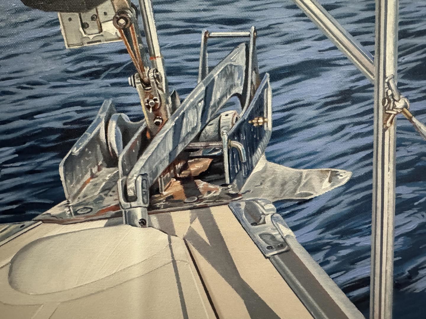 Brilliant original oil on linen with unique vision and skillful technique. Hand-signed by the artist. The piece elegantly comes framed. Art size 60x40" framed size 62x42"