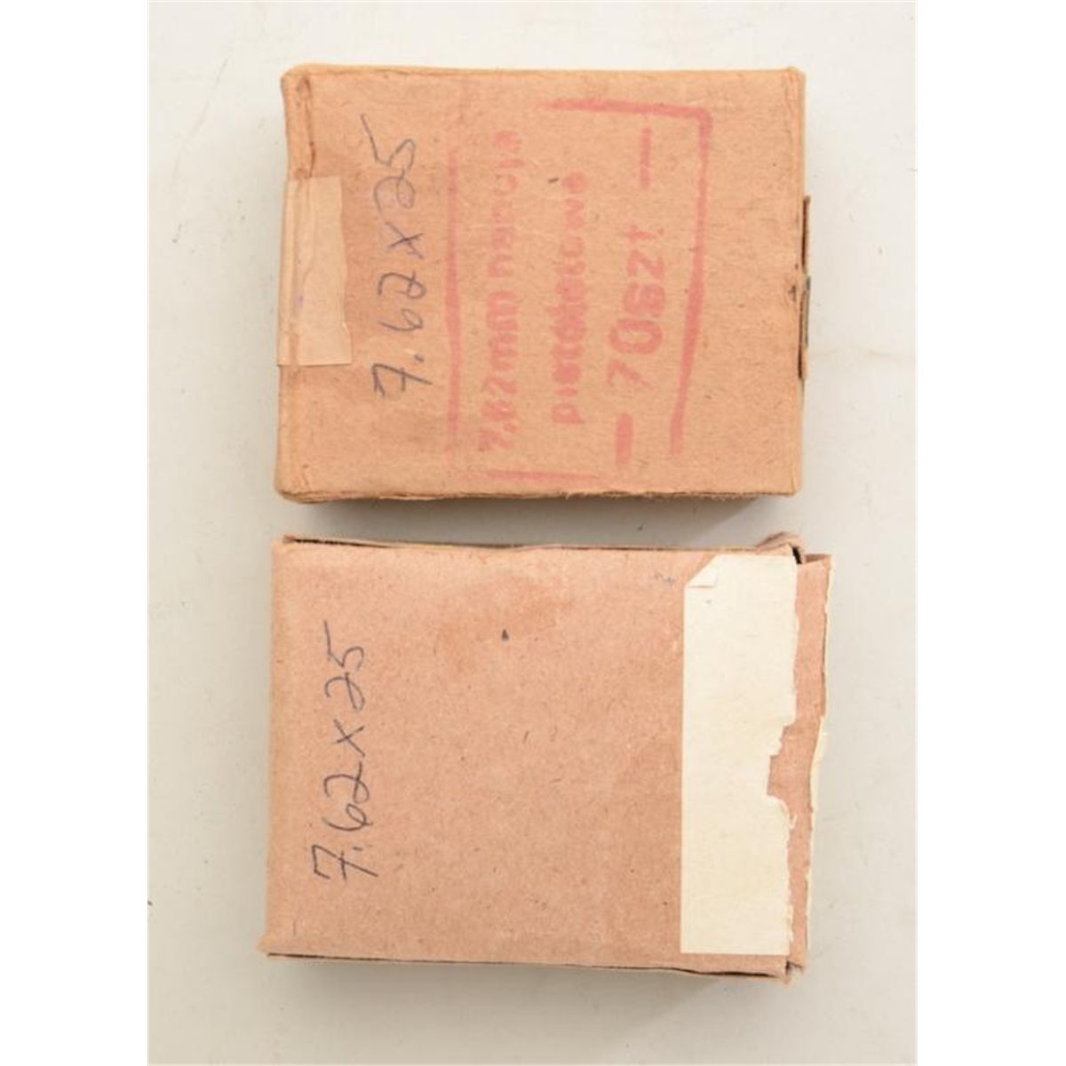 Approx. 180 rounds of collectible older .30 Mauser (7.62mm x 25) pistol ammo, most contained in three military style boxes. Est.: $50-$75.