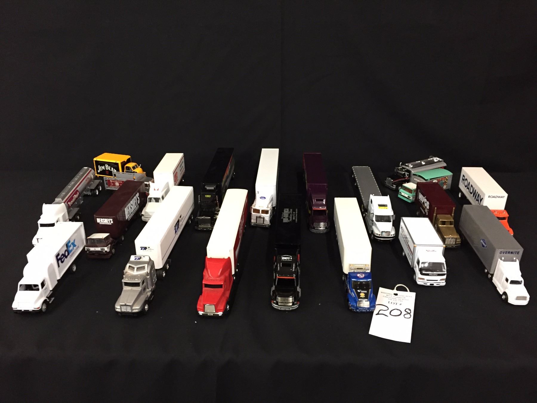 Maker: Various makers. Approx. Age: Most are fairly modern, some are vintage. Size: Sizes vary, most measure from approx. 6” to 12”. Additional Info: Various collectible toy trucks, most are semi but some others are mixed in along with additional pieces. Some are metal, some are plastic. Condition: Pretty good for their ages, but we did see a few broken parts here and there. Please look closely at the pictures - they are an important part of our description. Shipping: There will be a $10 handling / packaging fee for shipping this lot. The actual cost of postage will be added on top of that.