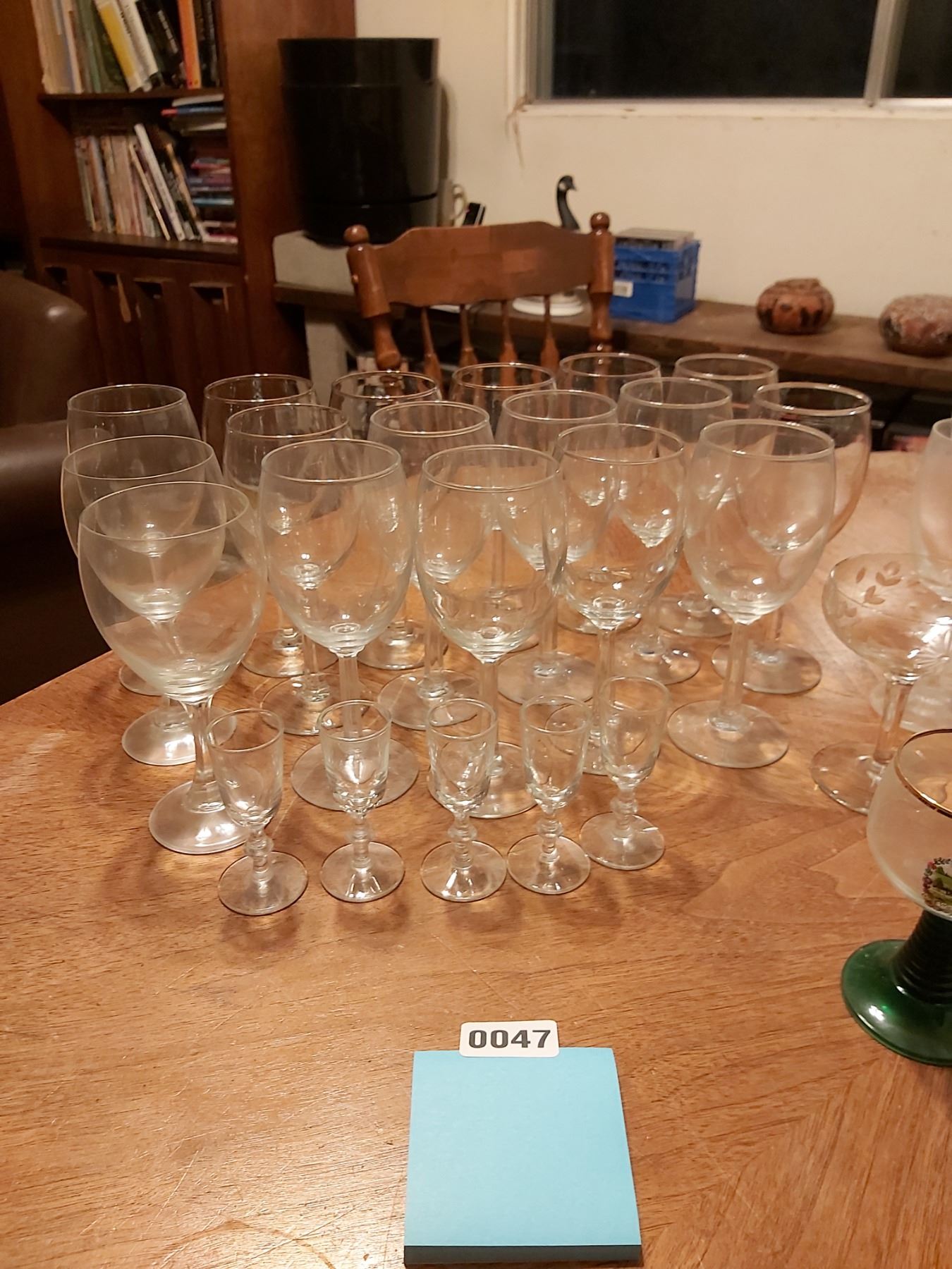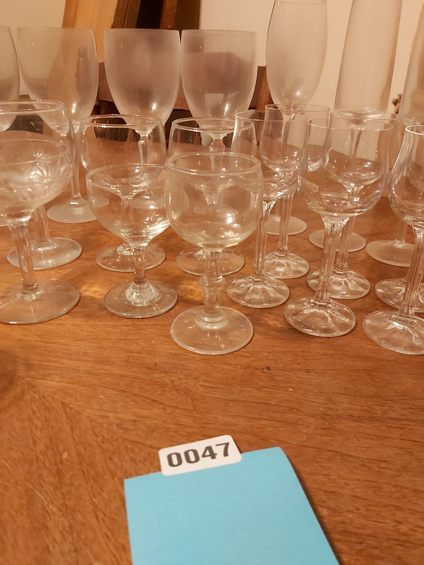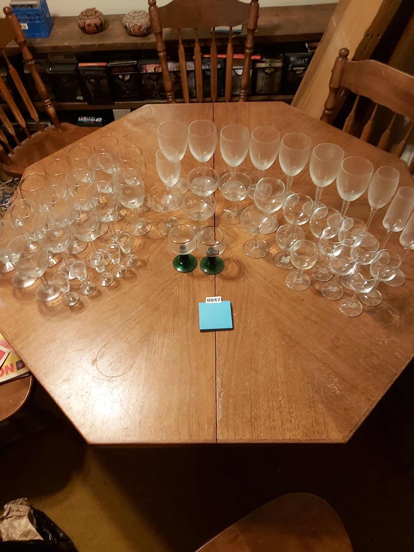 Approx 50 pcs asst wine, sherry, etc. glasses