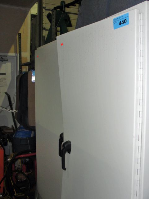 Approx 6F tall by 5F wide grey steel 2door cabinet