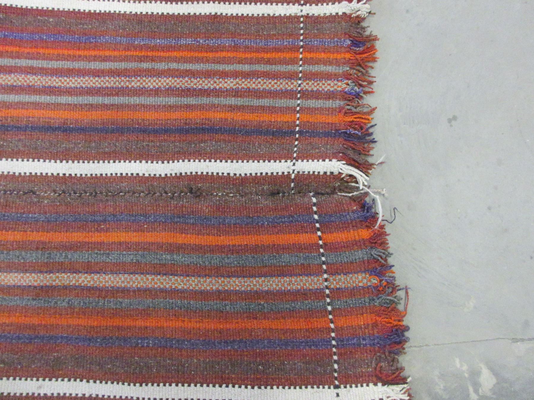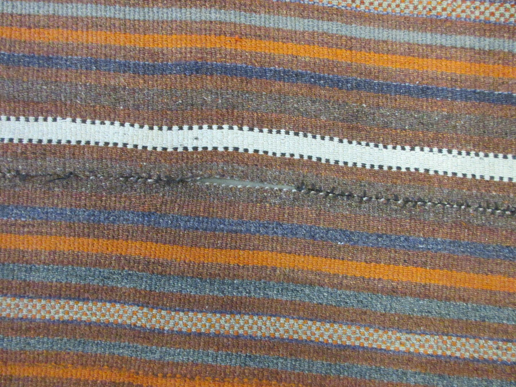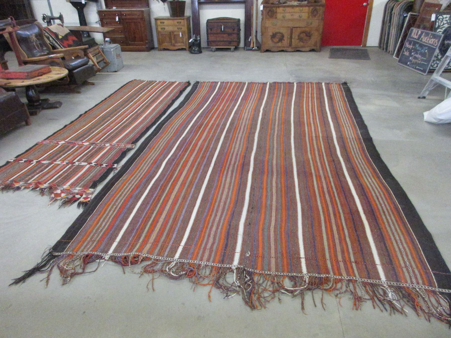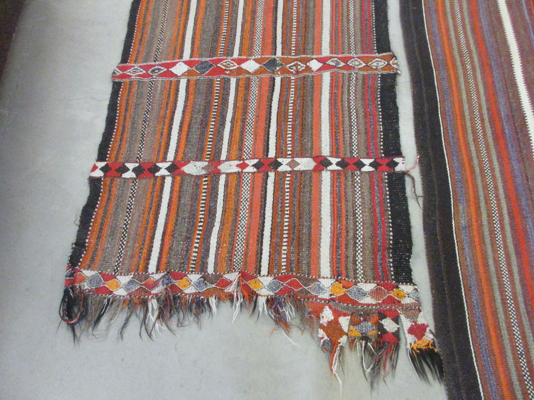 Approximately 12' X 7' Antique Striped Rug- Fringed- Some Repairs- Matching 11' X 40" Rug- Poor Condition