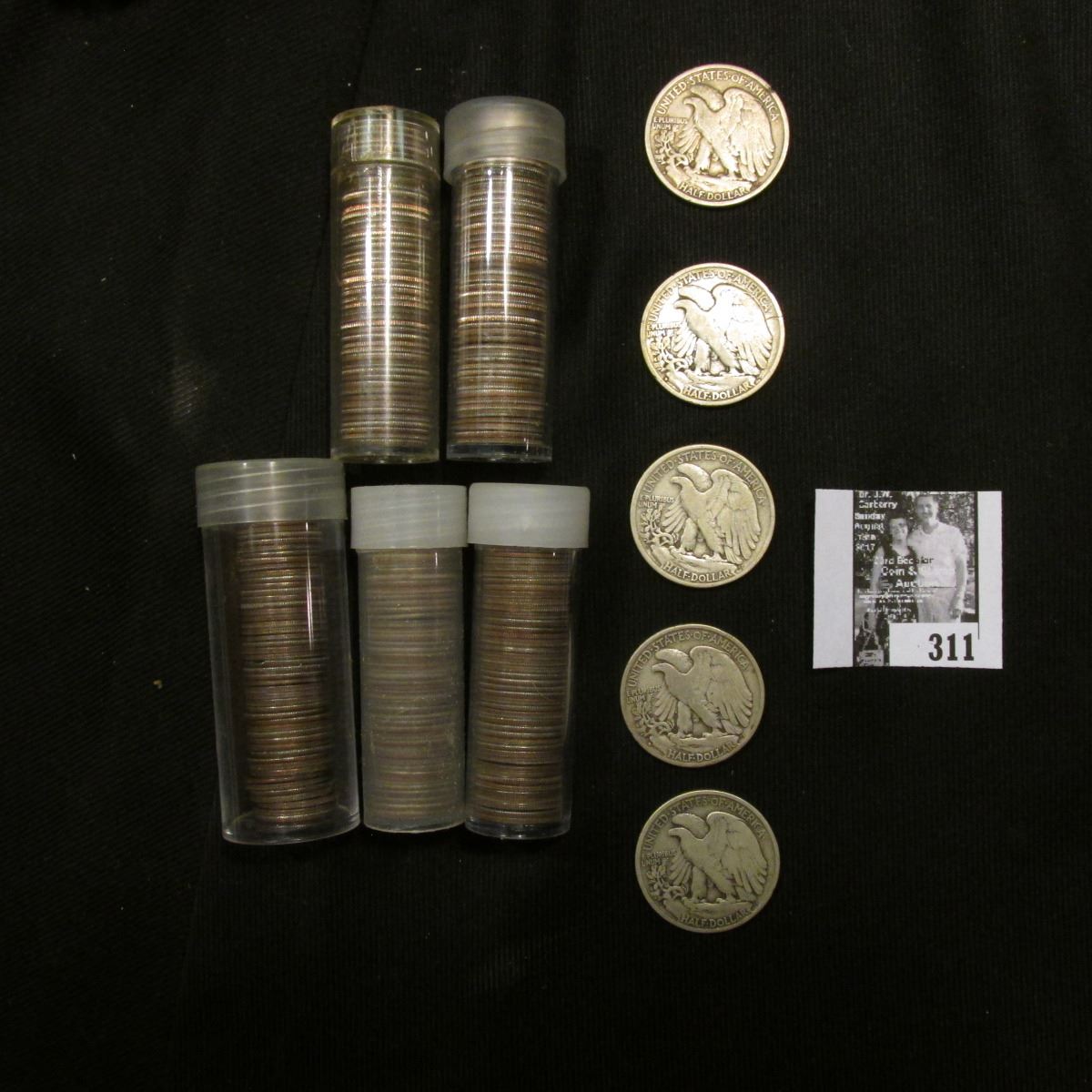 Approximately $25 face value in old clad Roosevelt Dimes, none checked for dates; & (5) Old U.S. Walking Liberty Half Dollars dating including a 1933 S.