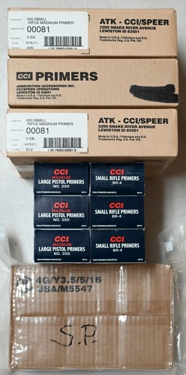 Approx. 5,000 No. 350 Large Pistol. Approx. 8,000 No. 450 Rifle Magnum. Approx. 5,000 No. 200 Large Rifle. Approx. 3,000 BR4 Small Rifle. Approx. 5,000 No. 500 Small Pistol.