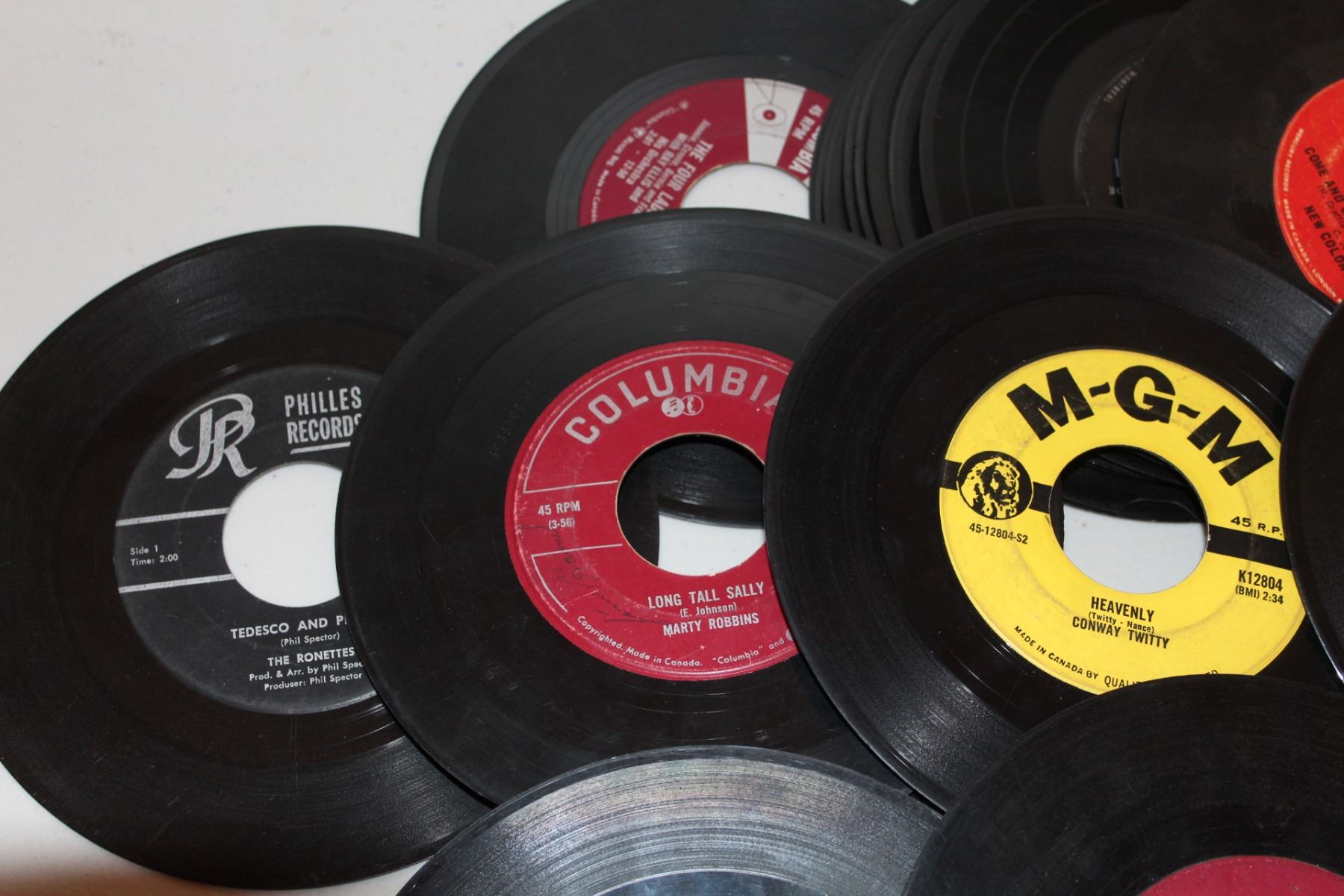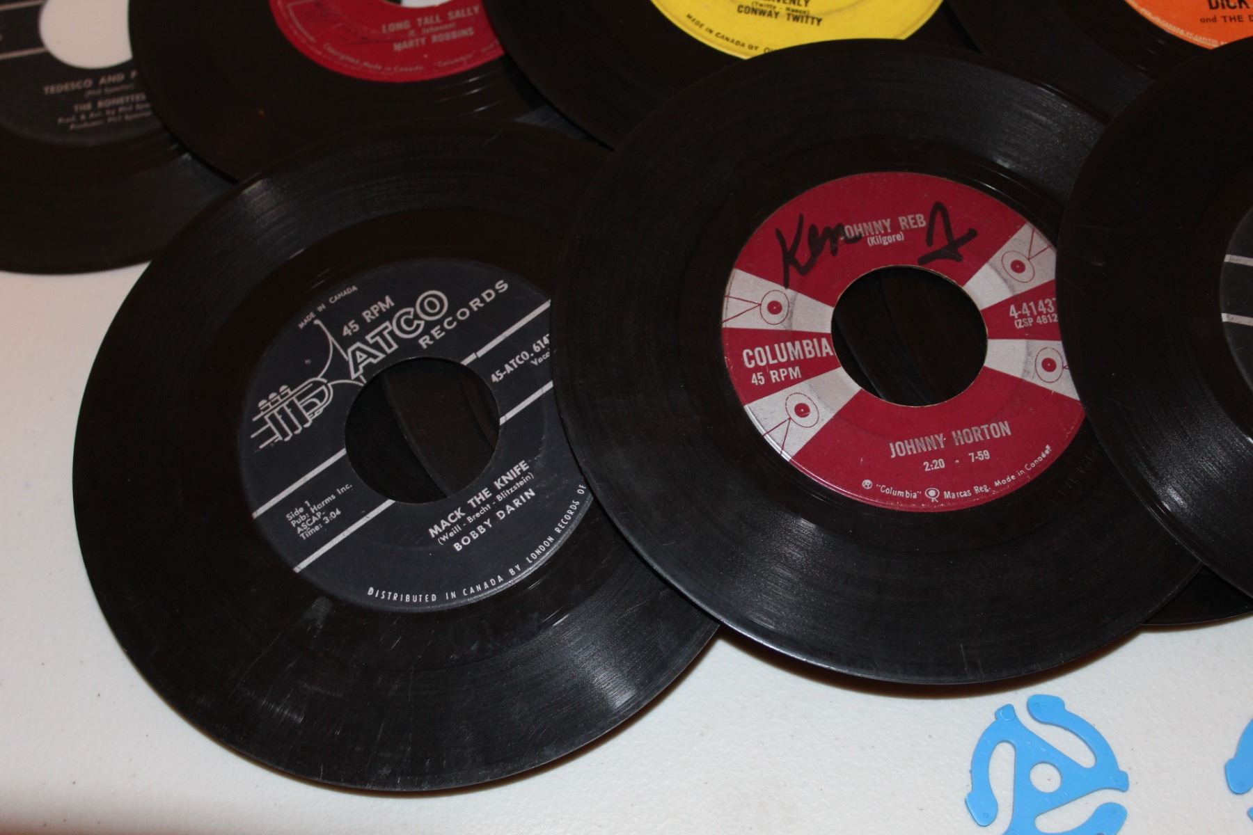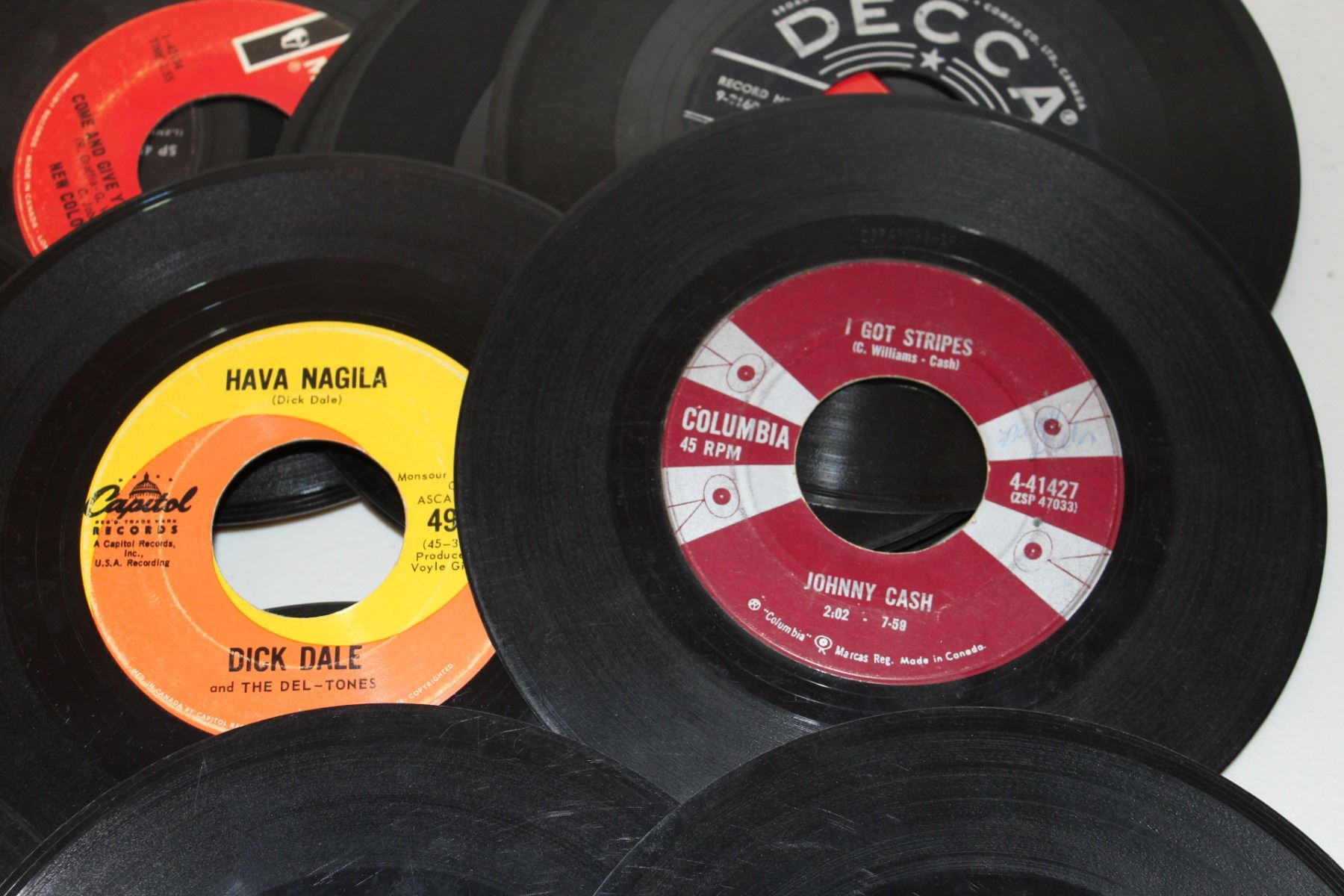 Approximately (50) 45 RPM Vinyl Records Of Varying Artists & Condition (No Jackets) - Johnny Horton, Conway Twitty, Dick Dale, Johnny Cash etc.
