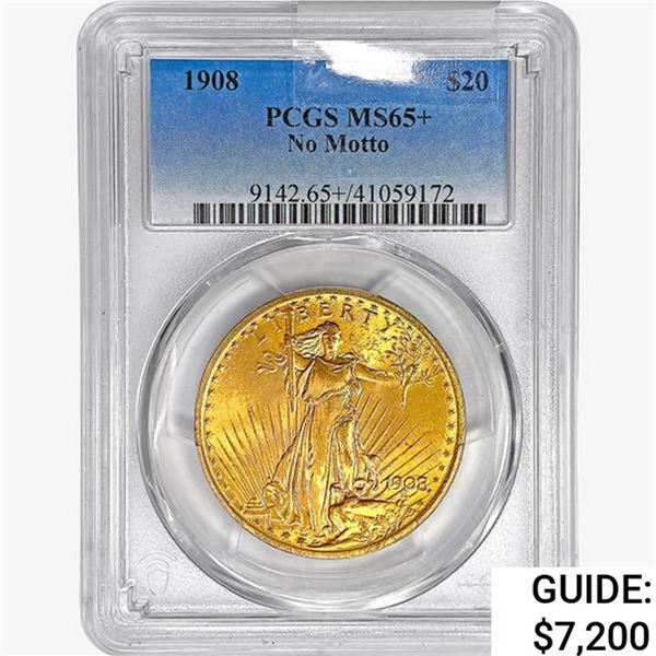 1908 $20 Gold Double Eagle PCGS MS65+ No Motto