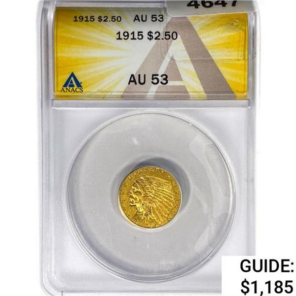 1915 $2.50 Gold Quarter Eagle ANACS AU53