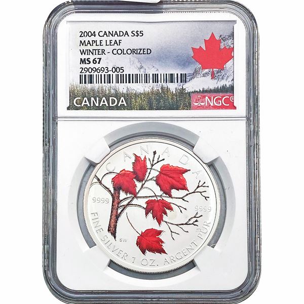 2004 Canada Silv. $5 Maple Leaf Winter-Colorized N