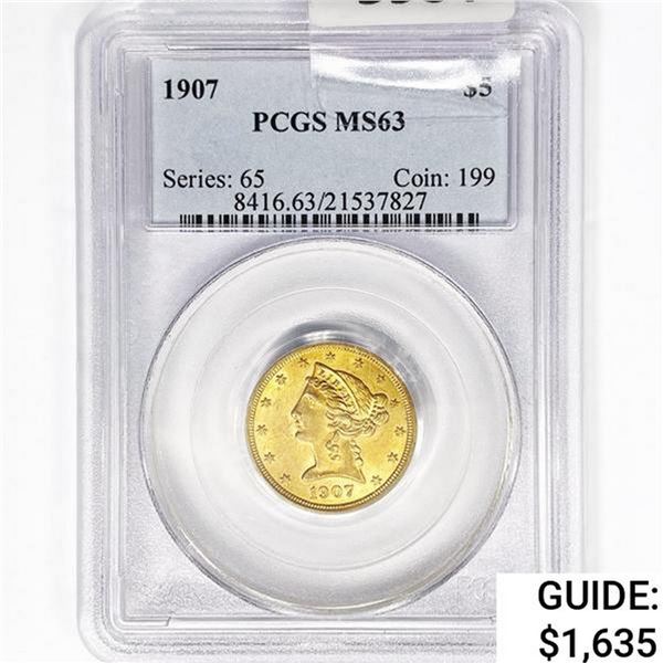 1907 $5 Gold Half Eagle PCGS MS63