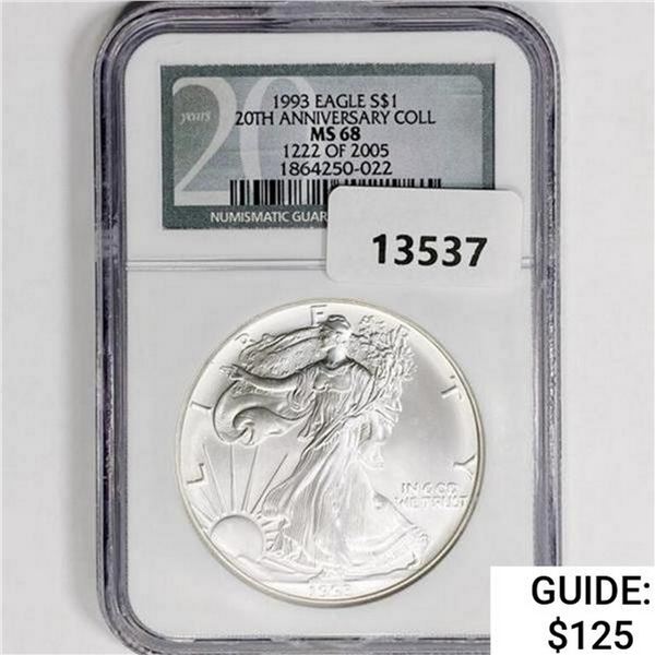 1993 Silver Eagle NGC MS68 20th Anniv Coll