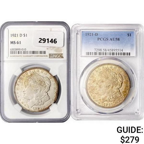 1921-D Set [2] Morgan Silver Dollar AU, MS