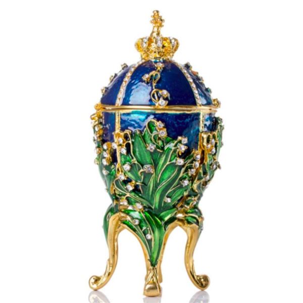 Faberge Inspired Blue Floral Footed Trinket Box Egg58 - Faberge Inspired Blue Floral Footed Trinket Box Egg