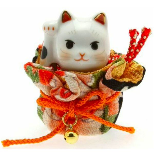 Japanese porcelain Maneki Neko, Lucky Cat figure, hand painted in Aichi prefecture in Japan ( historic center for this famous folk cr