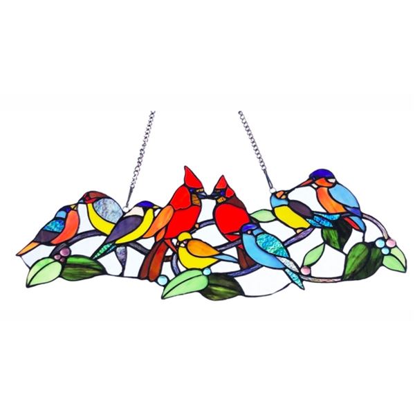 Stained Art Glass Hanging Birds Panel80 - Stained Art Glass Hanging Birds Panel